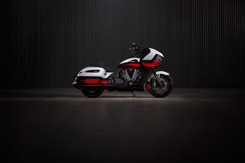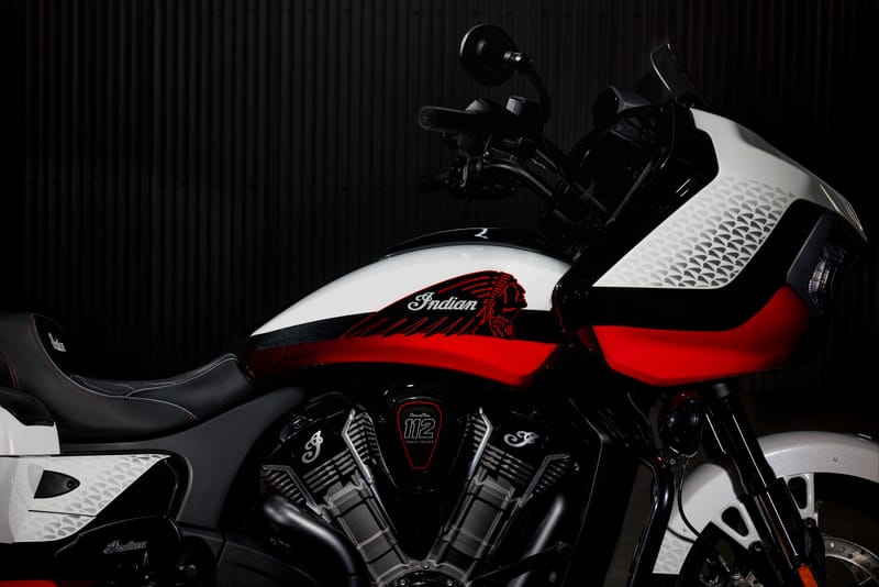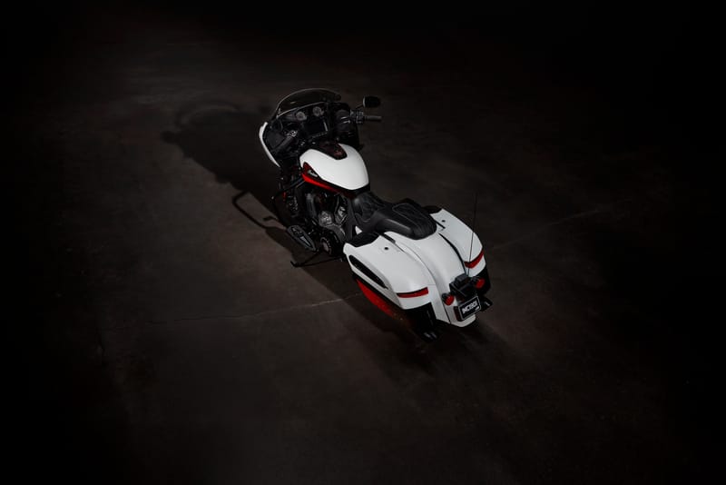 INDIAN CHALLENGER ELITE インディアンチャレンジャーエリートは、1920年にインディアンパワープラスで陸上速度記録を樹立し、「人類最速の男」と称されたジーン「アラバマ・フラッシュ」ウォーカーの遺産からデザインのインスピレーションを得ています。クリスタル・ホワイト・パール・サテンの上にプレミアム・ブラック・キャンディとレッド・キャンディを配した3トーンペイントのインディアンチャレンジャーエリートは、ペイントにガラス粒子を含めることで、輝きと深みを増しています。この多層ペイントは、手描きのフェードの上にインディアンモーターサイクルのヘッドドレスロゴパターンで仕上げられています。この印象的なペイントは、プレミアムブラックのダークホースフィニッシュと組み合わされ、この限定バガーに大胆、且つ、レースからインスパイアされたスタイルを与え、人々を振り返らせます。