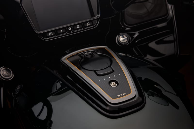ウォーカーの遺志を継ぐインディアンチャレンジャーエリートには、ジーン・ウォーカーのパワープラス・レーサーをイメージしたシリアルナンバー入りのセンターコンソールに加え、特徴的なパワープラス112エンジンカバーとエリートのバッジが各所にあしらわれています。