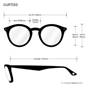 ラウンドシェイプフレームとレンズ。ヨロイ部の2ドットでクラシカルスタイルをイメージした’’カーチス’’